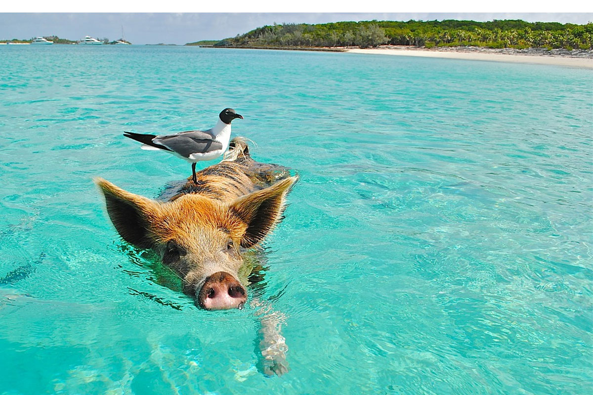 Today we decided to spend the day at the Exumas Islands, to have an opportunity to swim with the wild and cute pigs of Big Major Cay. We had so much fun here, we saw the pigs swiming in the sea and happily playing on the sun.